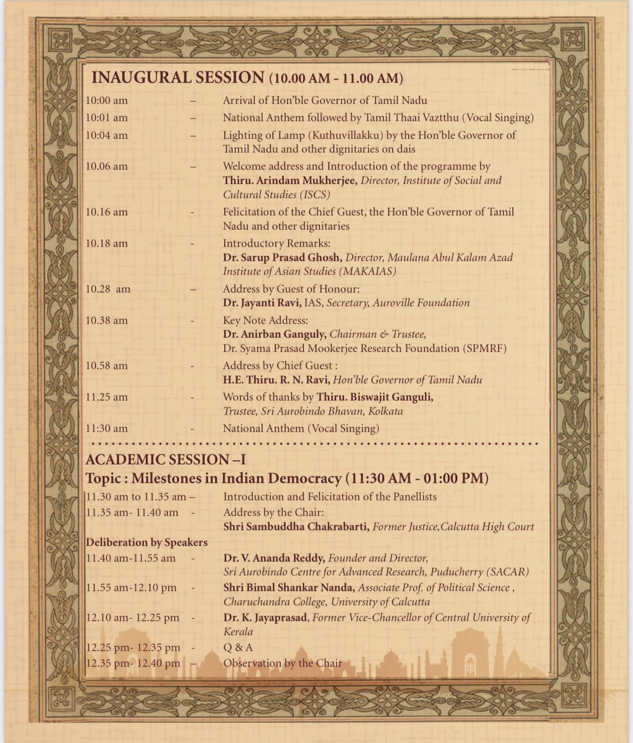 National Seminar on 75 years of Indian Republic: Milestones, Challenges and Future Horizons at Auroville.